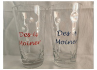 Knickschoppengläser, Dubbegläser und Weinstangen erhalten den Aufdruck "Des is Moiner", Knickweizengläser "Des is Moins" |