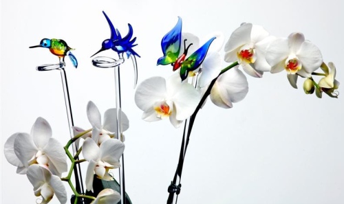 Die mundgeblasenen Orchideen- bzw. Blumenstäbe aus der Glasmanufraktur sind eine wunderschöne und