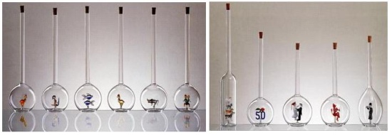 edle Flaschen mit innenliegenden Glasmotiven (Sternzeichen, Firmenlogo)oder auch Glasunikate wie z.B. Orchideenstäbe.